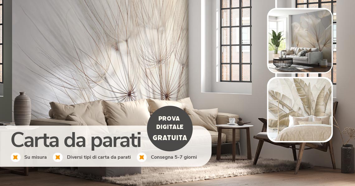 Con la carta da parati, le tende a rullo, gli adesivi per porte e le lampade di Youpri, porti davvero qualcosa di speciale a casa. Che tu ami lo stile classico, romantico o moderno, nella nostra collezione troverai sicuramente qualcosa che si adatta ai tuoi gusti. E se preferisci renderlo ancora più personale, puoi semplicemente scegliere le tue foto e noi creeremo un prodotto unico per te! Scopri il nostro negozio e scegli il prodotto perfetto per te.