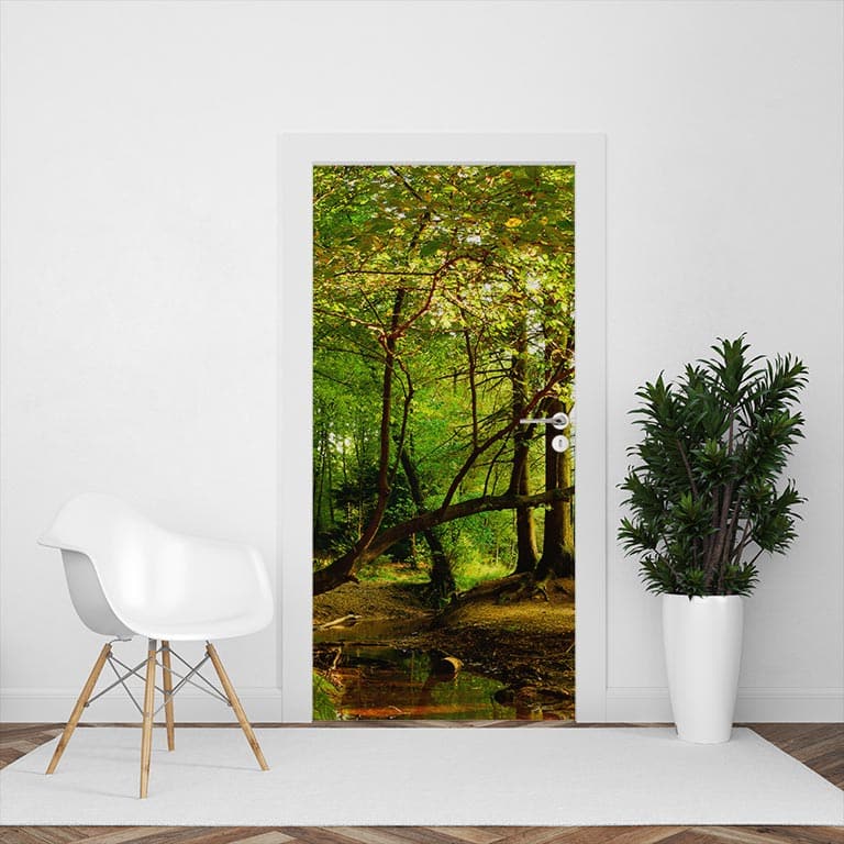Dona alla tua porta un tocco di serenità con l’adesivo per porta Foresta e ruscello. Questa immagine suggestiva combina il verde intenso della foresta con l’acqua cristallina di un ruscello che scorre dolcemente, creando un’atmosfera rilassante in ogni ambiente.