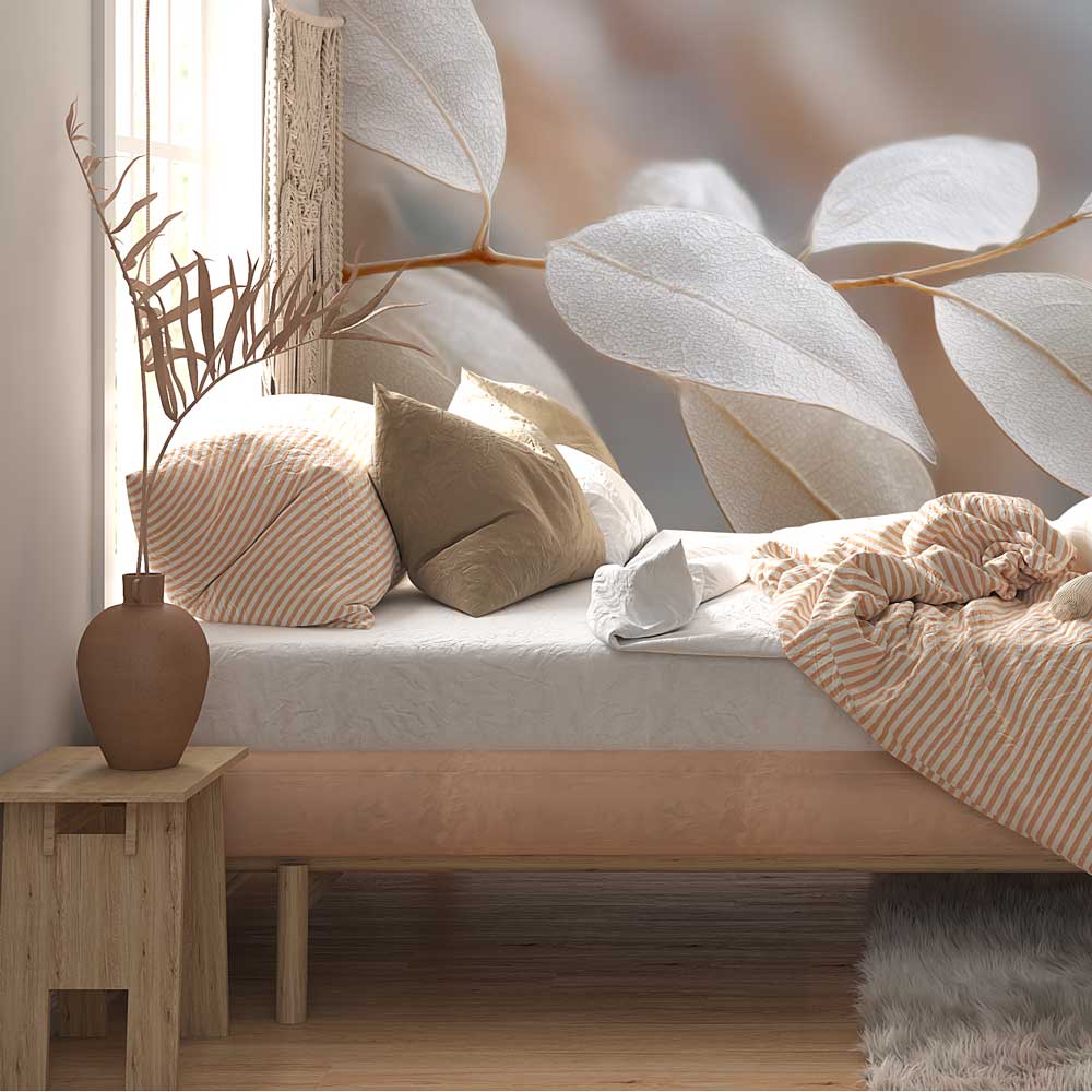 Dona un tocco di freschezza e delicatezza con la carta da parati Foglie chiare sul ramo di Youpri. Il design raffinato, con foglie luminose che si stagliano su rami sottili, crea un’atmosfera ariosa e naturale, perfetta per soggiorni, camere da letto o studi.