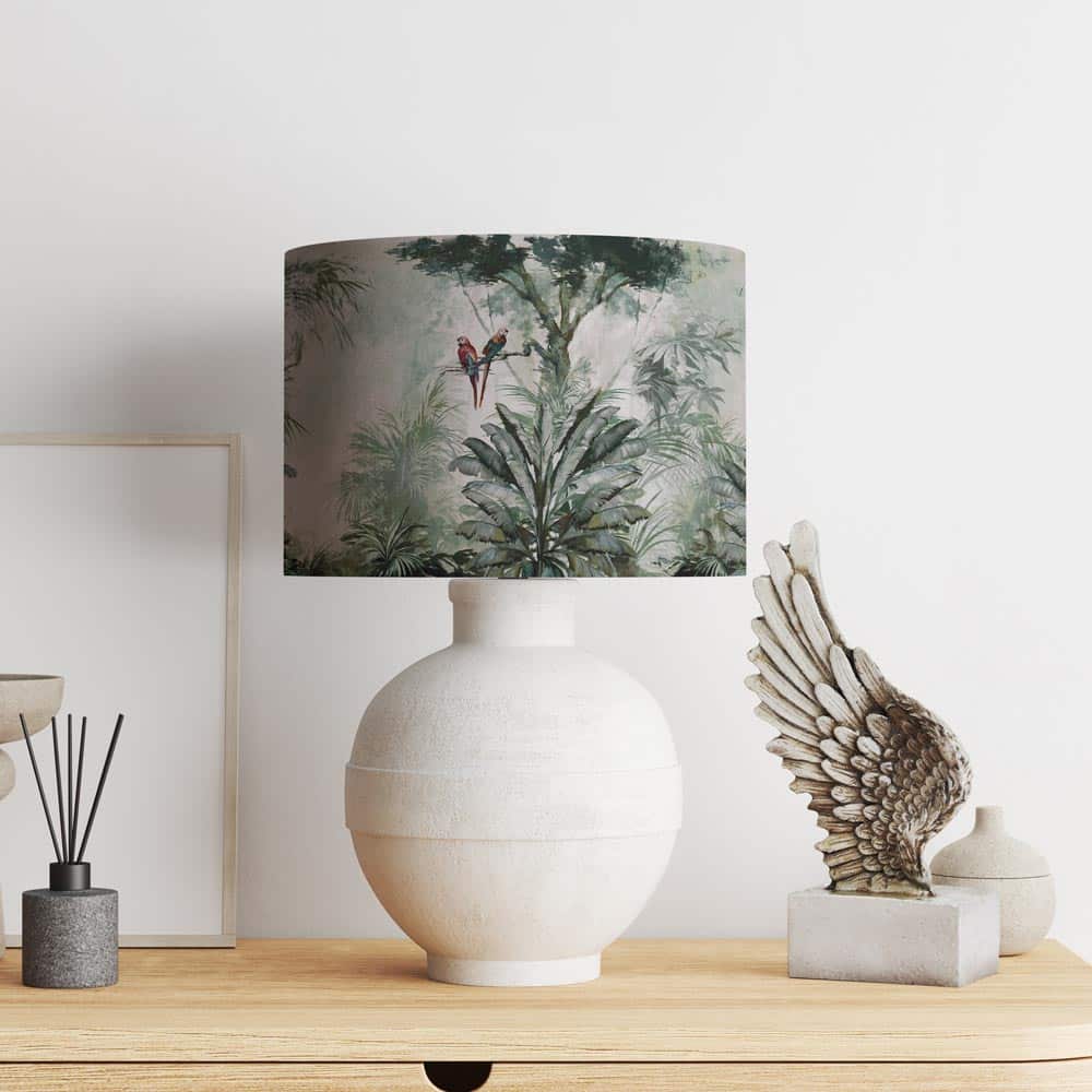 Porta colore e vivacità nella tua casa con il paralume Pappagalli nella giungla. Il design, con pappagalli variopinti immersi tra foglie e rami tropicali, crea un’atmosfera allegra e naturale, perfetta per chi ama dettagli esotici e originali. Un tocco di allegria che illumina ogni ambiente con energia e stile.